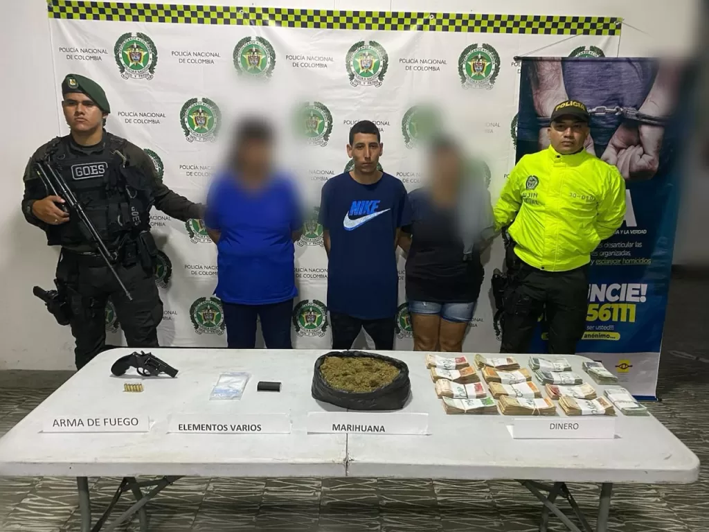 La ejecución de allanamientos permitió la incautación de 930 gramos de marihuana, más de 17 millones de pesos en efectivo, un teléfono celular, bolsas de empaque e instrumentos para la elaboración de cigarrillos de marihuana.