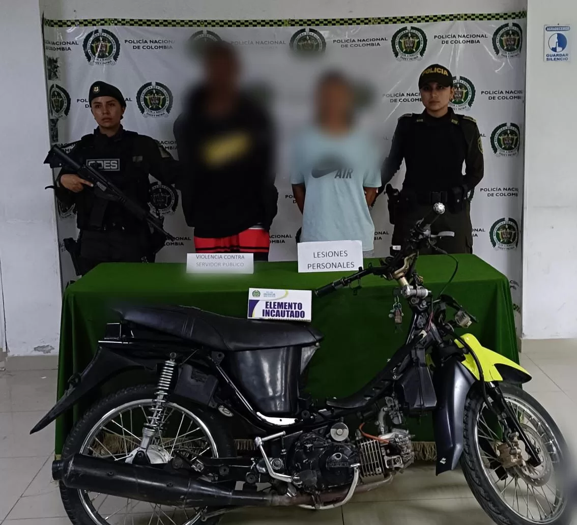 En el marco de la estrategia ‘Plan 90 días contra el homicidio’, el personal del Modelo Nacional de Vigilancia Comunitaria Por Cuadrantes, adscrito al Departamento de Policía Valle, logró la captura en flagrancia de dos individuos, de 18 y 19 años, en el municipio de Palmira, además de la incautación de la motocicleta en la que se desplazaban.