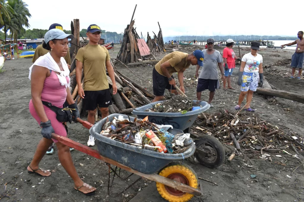 La Fuerza Naval colombiana ayuda a los habitantes y aporta maquinaria para limpiar las zonas verdes y el mar de los muelles, acciones que habitantes del sector pacifico agradecen y admiran por su gran labor ambiental y social.