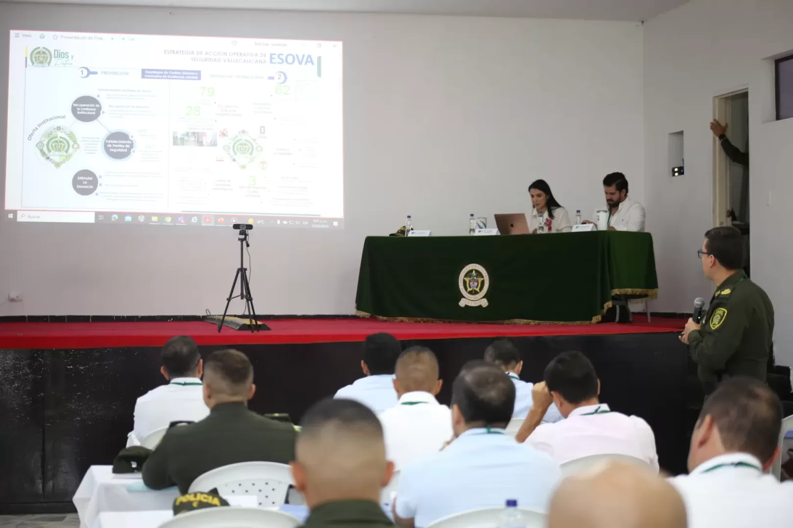 En el Auditorio Armando Trujillo de la Escuela de Policía Simón Bolívar, se llevó a cabo un encuentro entre comandantes de la policía del departamento del Valle del Cauca, alcaldes, la Secretaria de Seguridad y Convivencia del departamento del Valle, el comandante de policía Valle encargado y secretarios de gobierno de los municipios.