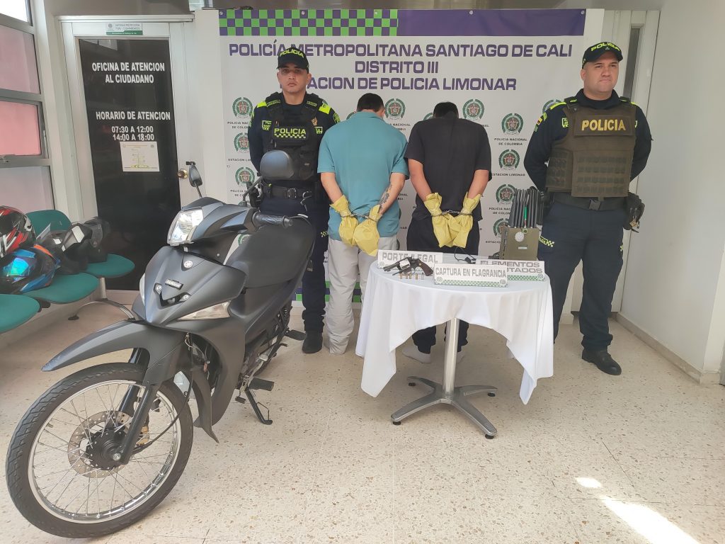 En una operación conjunta entre la Policía Nacional y el Ejército Nacional en el barrio Mayapan de Cali, dos individuos fueron capturados en flagrancia mientras intentaban robar una motocicleta utilizando armas de fuego.