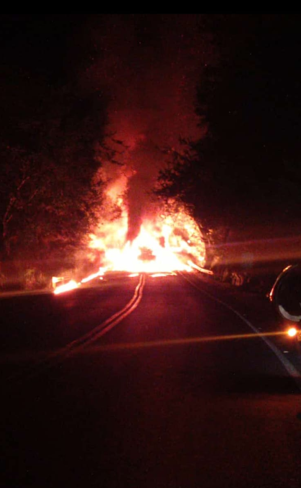 INCENDIO EN LA VÍA ENTRE LA PAILA Y LA TEBAIDA TRAS ACCIDENTE.