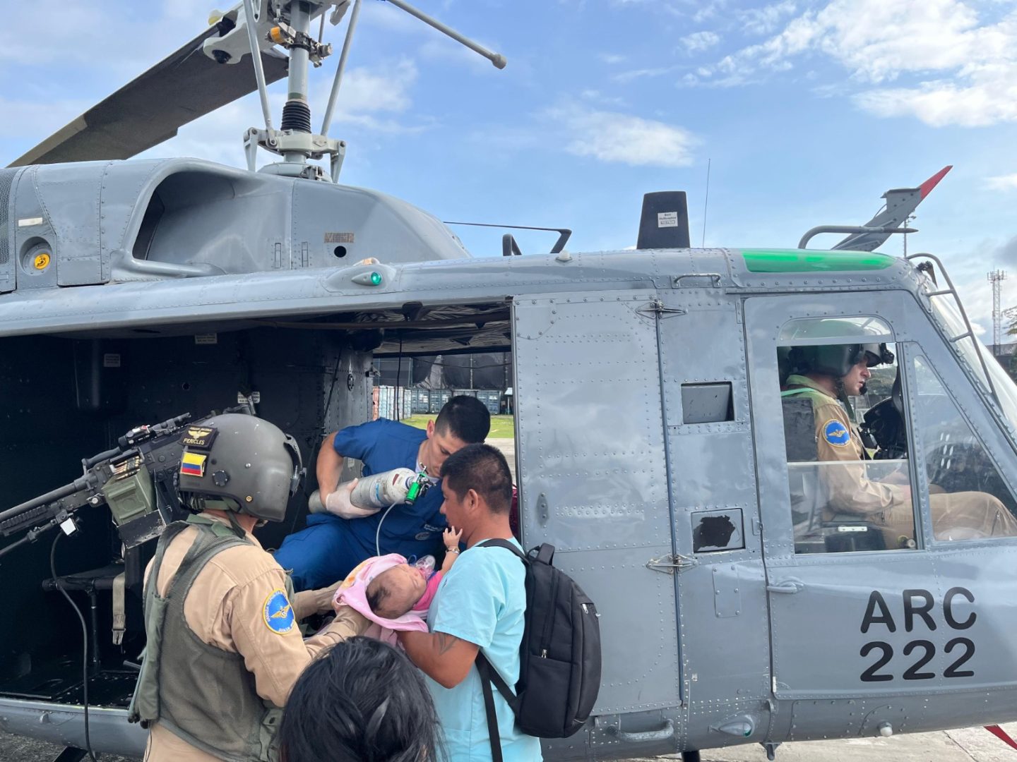 La intervención se realizó luego de recibir una solicitud de la Secretaría de Salud del municipio de Docordó, que alertó sobre la crítica condición médica de los menores. Como primera medida, los niños fueron trasladados en motonave hasta Docordó, pero las adversas condiciones meteomarinas complicaron el trayecto. Ante esta situación, la Armada desplegó una aeronave del Grupo Aeronaval del Pacífico, equipada con personal médico del Dispensario Nivel I de Bahía Málaga, para continuar con el traslado hacia un centro de atención adecuado.