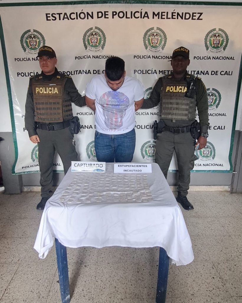 En el marco de la estrategia integral «Por Cali Siempre Presentes», la Policía Metropolitana de Cali capturó a un hombre conocido como alias «Veneno», quien transportaba 120 bolsas herméticas con clorhidrato de cocaína. La captura ocurrió en el sector El Hueco, en la vía La Paz, donde los uniformados realizaron un registro de personas y encontraron la droga.