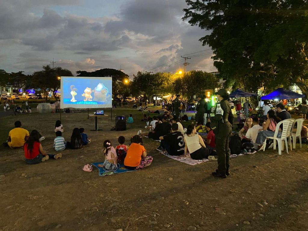 ser un espacio recreativo, “Cine al Parque” también ofrece la oportunidad de abordar temas de seguridad y convivencia, mediante recomendaciones a los asistentes sobre cómo disfrutar de un ambiente público de manera segura. Esta estrategia busca no solo ofrecer esparcimiento, sino también contribuir a la creación de un entorno más seguro para los habitantes del municipio.