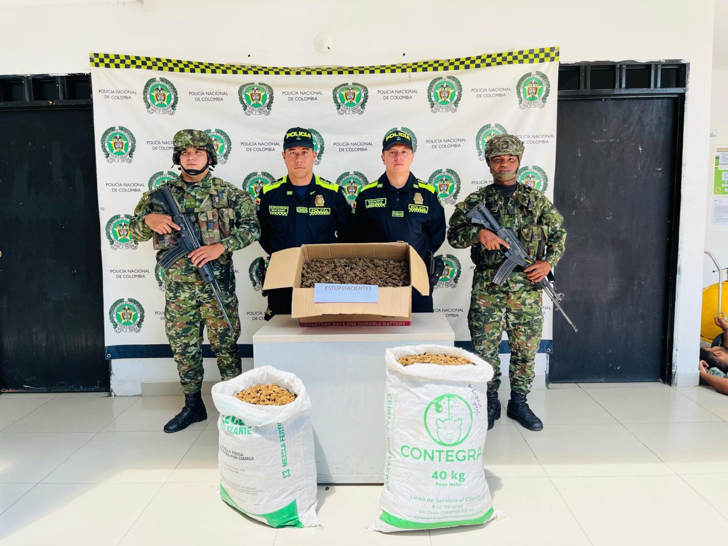 Las patrullas del nuevo modelo de servicio de Policía, que realizaban labores de vigilancia y control en el tramo vial, respondieron rápidamente al llamado y se desplazaron al lugar indicado. Al llegar, las autoridades confirmaron que los bultos contenían marihuana, cuya característica y olor eran fácilmente identificables. En total, se incautaron 32 libras de marihuana, con un valor estimado de $2.240.000 pesos.