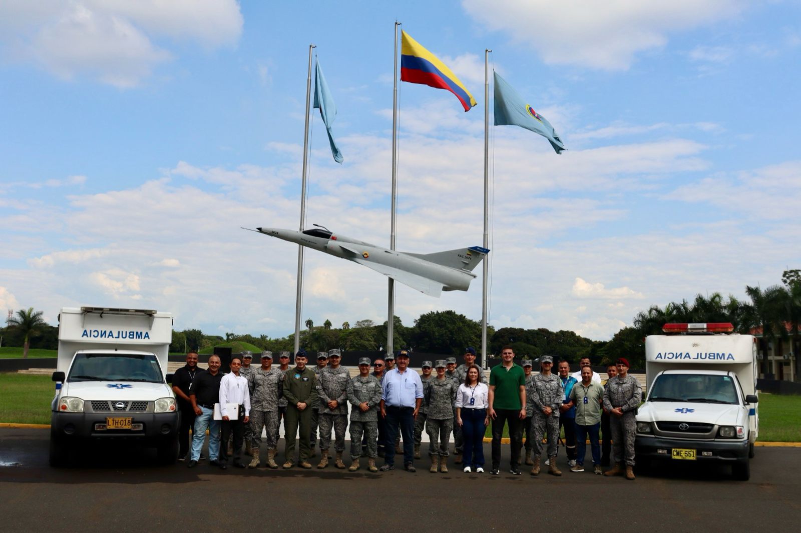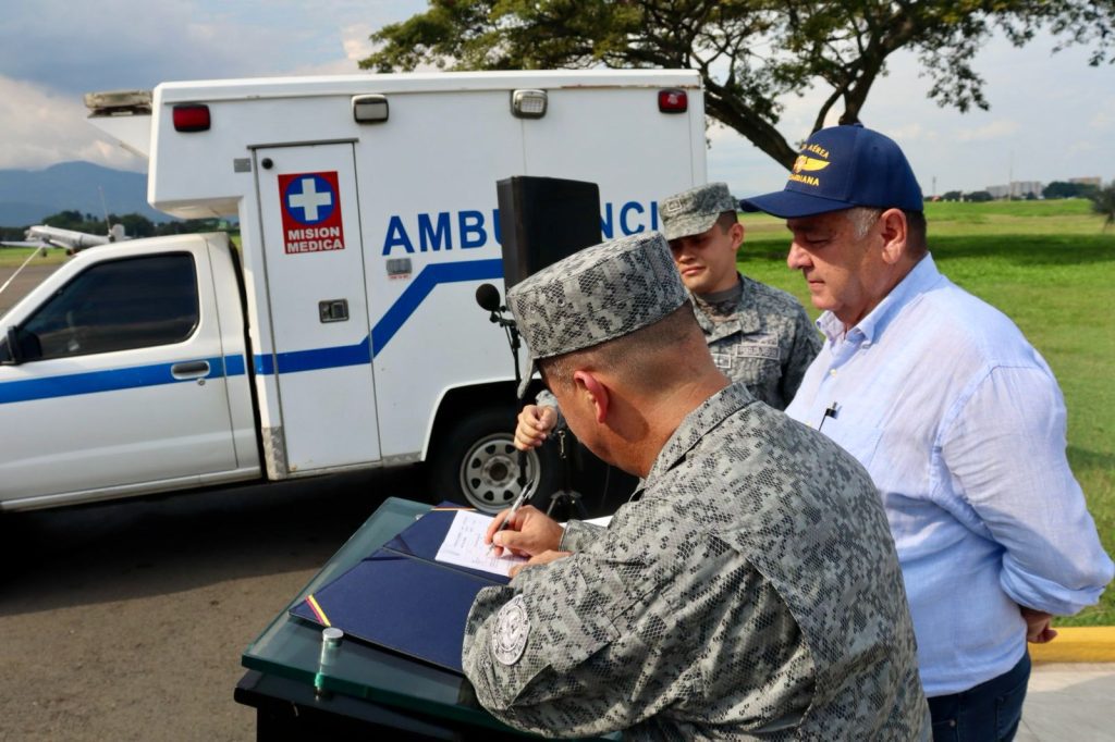 La Fuerza Aeroespacial Colombiana (FAC), a través de la Escuela Militar de Aviación Marco Fidel Suárez (EMAVI), hizo entrega de dos ambulancias en perfectas condiciones al alcalde del municipio de Trujillo, José Luis Duque, con el objetivo de mejorar la atención médica en la región, especialmente en las zonas más apartadas.