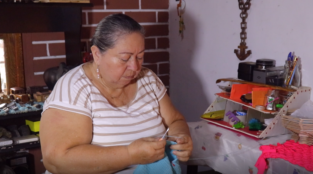 “Recuerdo a mi mamá, sentada en su silla, tejiendo mientras yo la miraba. No entendía en ese momento la importancia de lo que hacía, pero el tiempo me enseñó a valorar cada uno de esos pequeños detalles”, comparte María Consuelo, mientras sus ojos brillan con la dulzura de esos recuerdos. A los 13 años, las manos de su madre le enseñaron a crear lo que más tarde se convertiría en su medio de vida. Sin embargo, por muchos años, ese arte de tejer pasó desapercibido en su vida, hasta que las circunstancias la obligaron a mirar más allá de lo evidente.