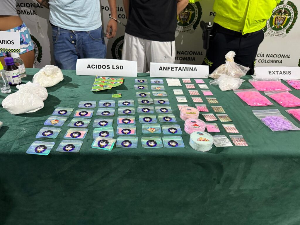 Durante el operativo, se realizaron cinco allanamientos y se capturaron a cuatro personas en flagrancia. Además de las detenciones, se incautaron cerca de 200 unidades de fentanilo, diazepam y morfina, medicamentos de control especial, así como más de 60 frascos de sustancias químicas como popper y medicamentos veterinarios como ketamina. También se decomisaron 1.800 dosis de drogas sintéticas, junto con elementos utilizados en la fabricación de estas sustancias, como colorantes, saborizantes, jeringas, grameras y bolsas de dosificación.