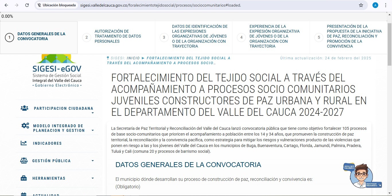 Las comunidades y colectivos de paz de los municipios de Buga, Buenaventura, Cartago, Florida, Jamundí, Palmira, Pradera, Tuluá y la comuna 20 de Cali tienen hasta el próximo 17 de marzo para postularse a la convocatoria Fortalecimiento Tejido Social, impulsada por la Gobernación del Valle del Cauca. Con esta iniciativa, se busca apoyar a 105 proyectos que promuevan la paz, la reconciliación y la convivencia, centrados especialmente en los jóvenes de la región.