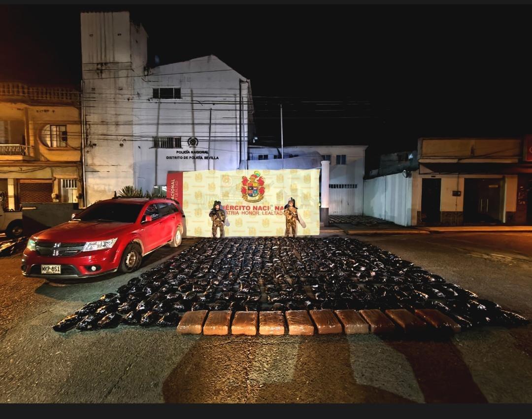 La primera incautación se produjo cuando tropas del Batallón de Alta Montaña N.° 10 y unidades de la Policía Nacional detectaron un vehículo sospechoso en la vía. Al intentar interceptarlo, los ocupantes del automotor huyeron, dejando abandonado el vehículo con 94 bultos que, al ser inspeccionados, contenían marihuana.
