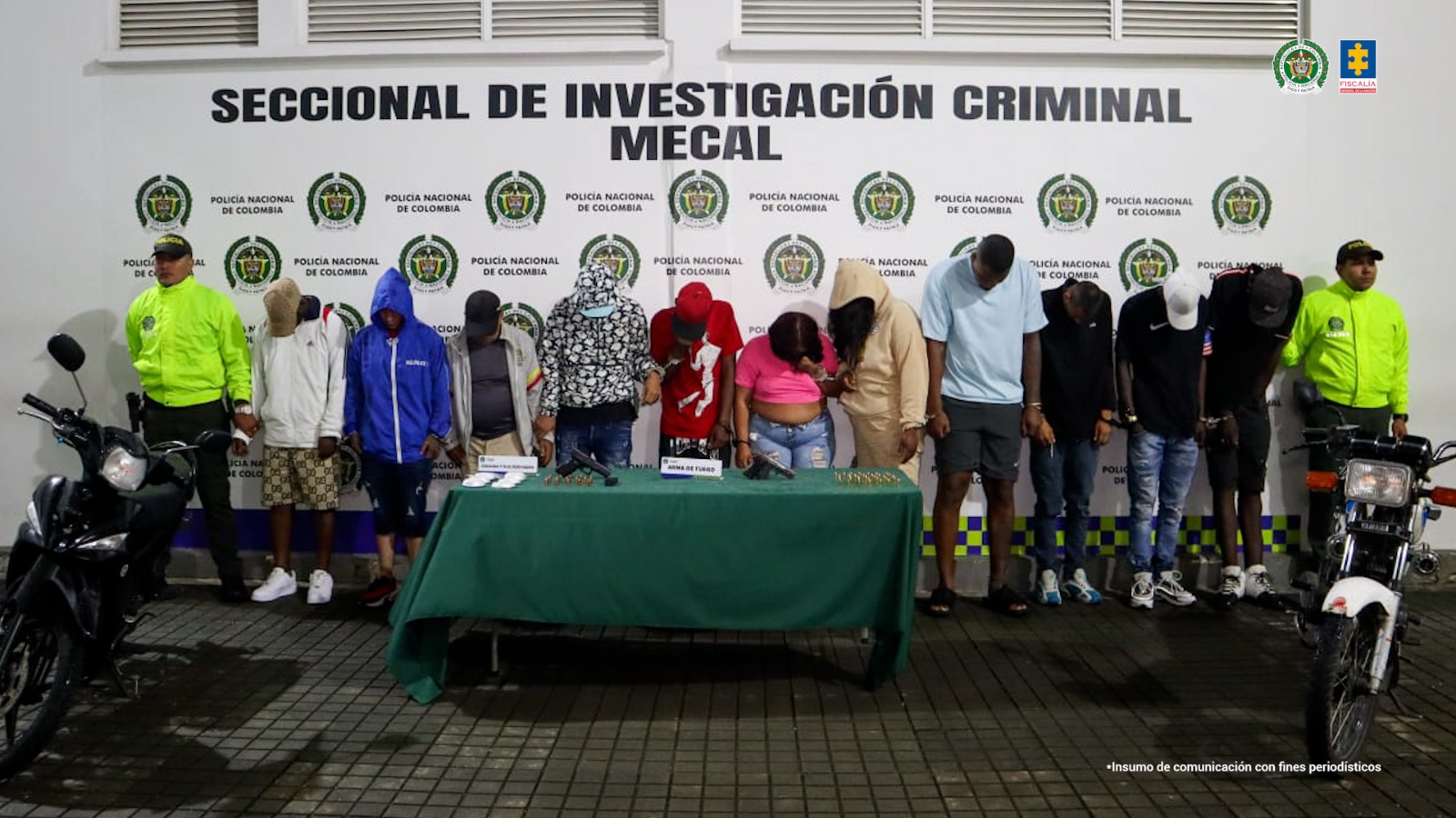 La Fiscalía General de la Nación, en un operativo judicial realizado en las últimas horas, logró la captura de 11 presuntos integrantes de la banda criminal conocida como “La Empresa”, dedicada a actividades ilícitas como sicariato, robos y tráfico de estupefacientes en varias zonas de la ciudad. Un juez de control de garantías impuso medidas de aseguramiento en centro carcelario para los capturados, quienes fueron imputados por delitos como homicidio, tentativa de homicidio, concierto para delinquir, porte ilegal de armas de fuego y tráfico de estupefacientes.