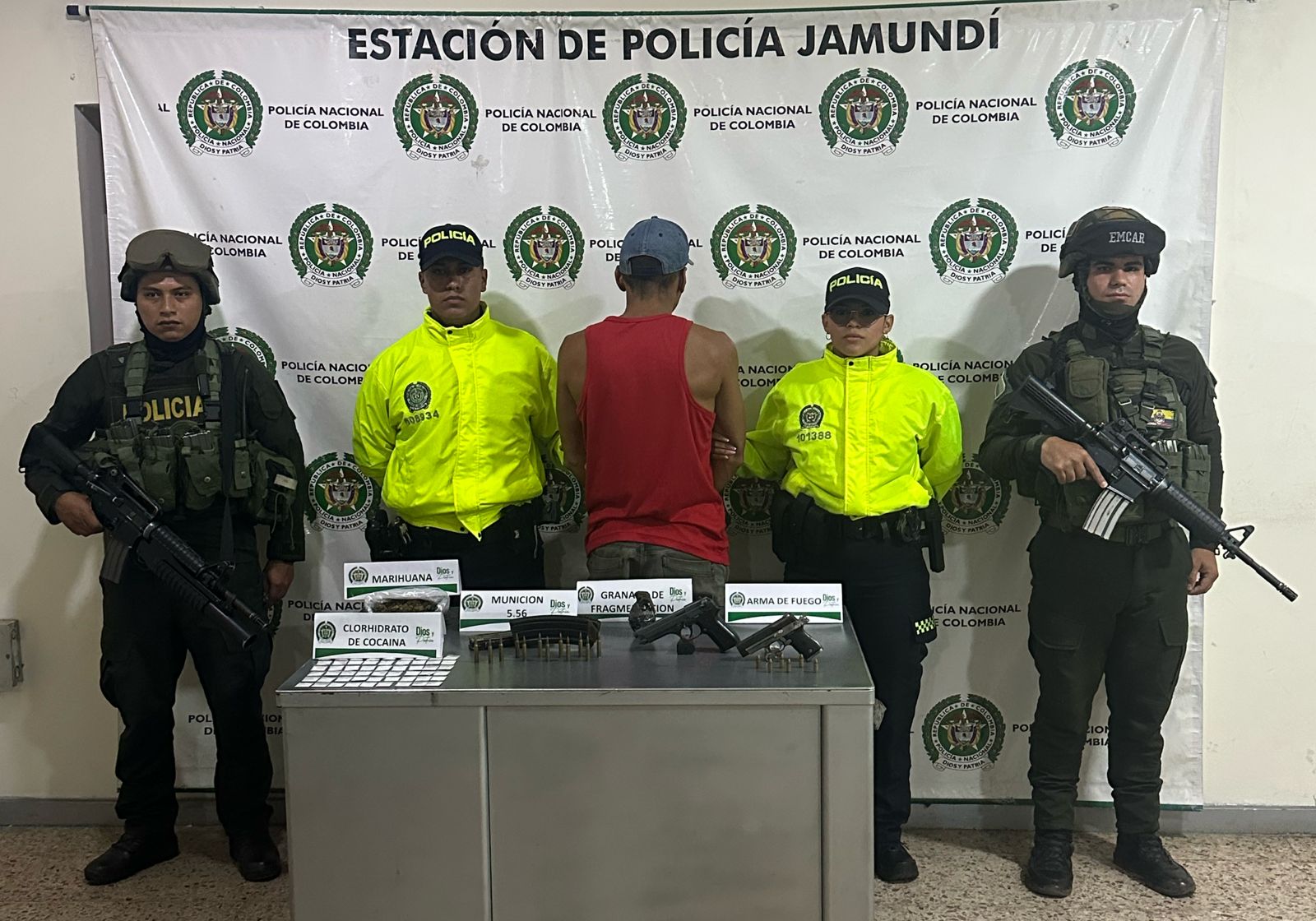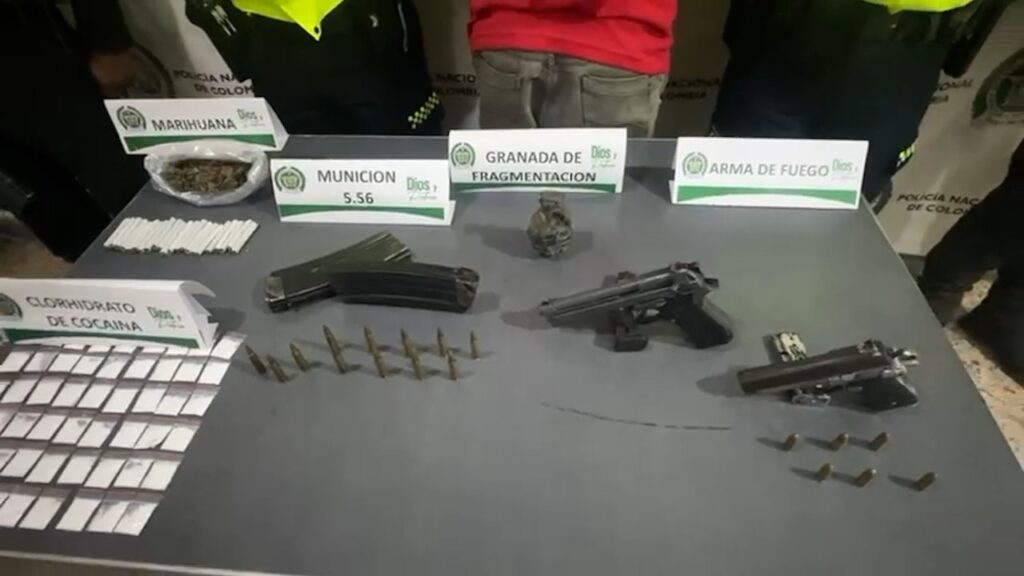 La captura se realizó en el sector conocido como La Playita, donde las autoridades ejecutaron seis diligencias de allanamiento. Durante los operativos, se hallaron una granada de fragmentación, dos pistolas, nueve cartuchos 9 mm, dos proveedores, 12 cartuchos para fusil y 250 dosis de estupefacientes, entre marihuana y derivados de cocaína.