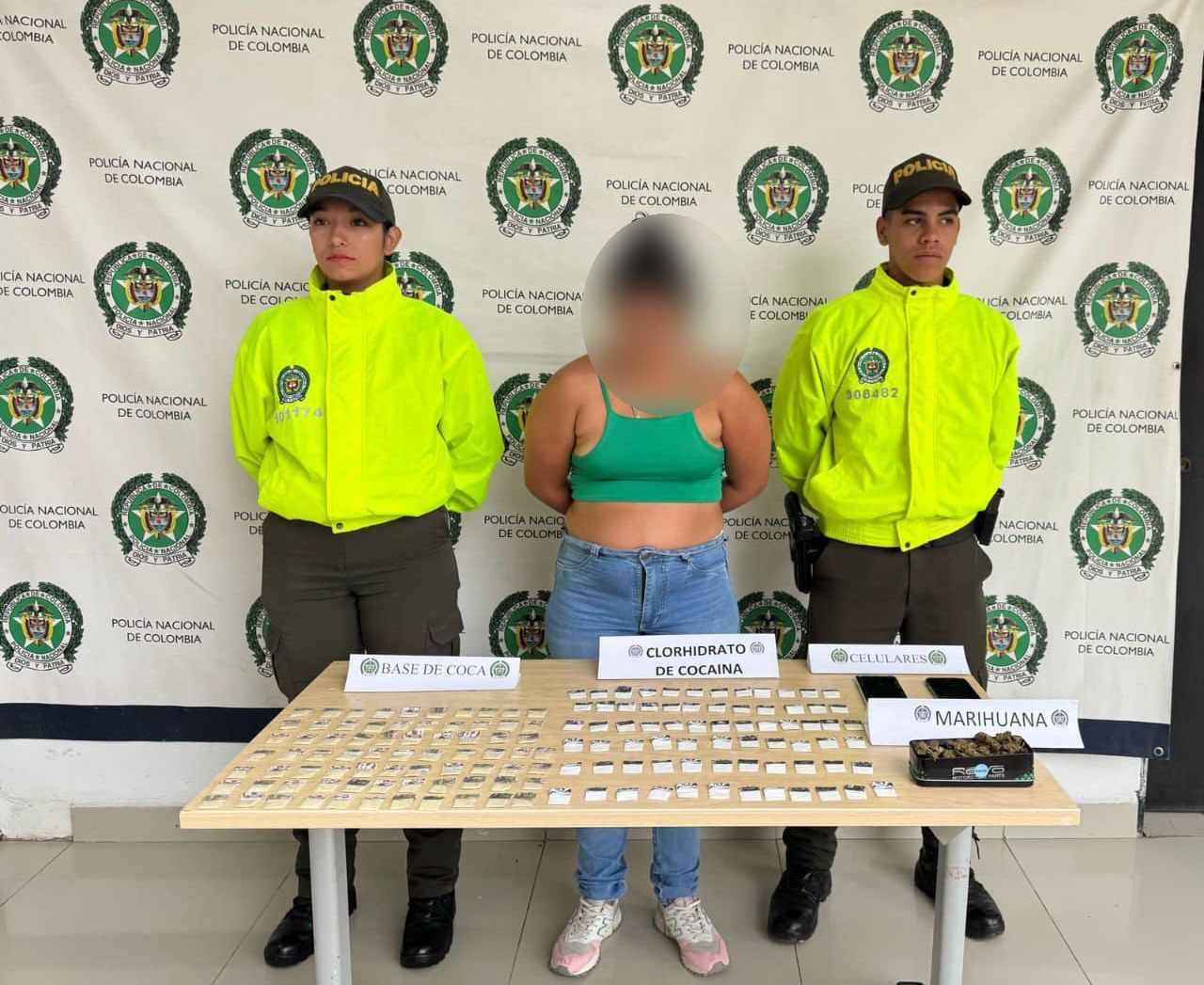 Durante su captura, las autoridades incautaron 75 dosis de cocaína, 75 dosis de bazuco, 150 gramos de marihuana y dos celulares de marca Samsung. Estos elementos fueron asegurados como prueba de las actividades ilícitas de la detenida. Alias “Briyi” y los elementos incautados fueron puestos a disposición de la Fiscalía General de la Nación, donde un juez de control de garantías ordenó su medida de aseguramiento en un centro carcelario.