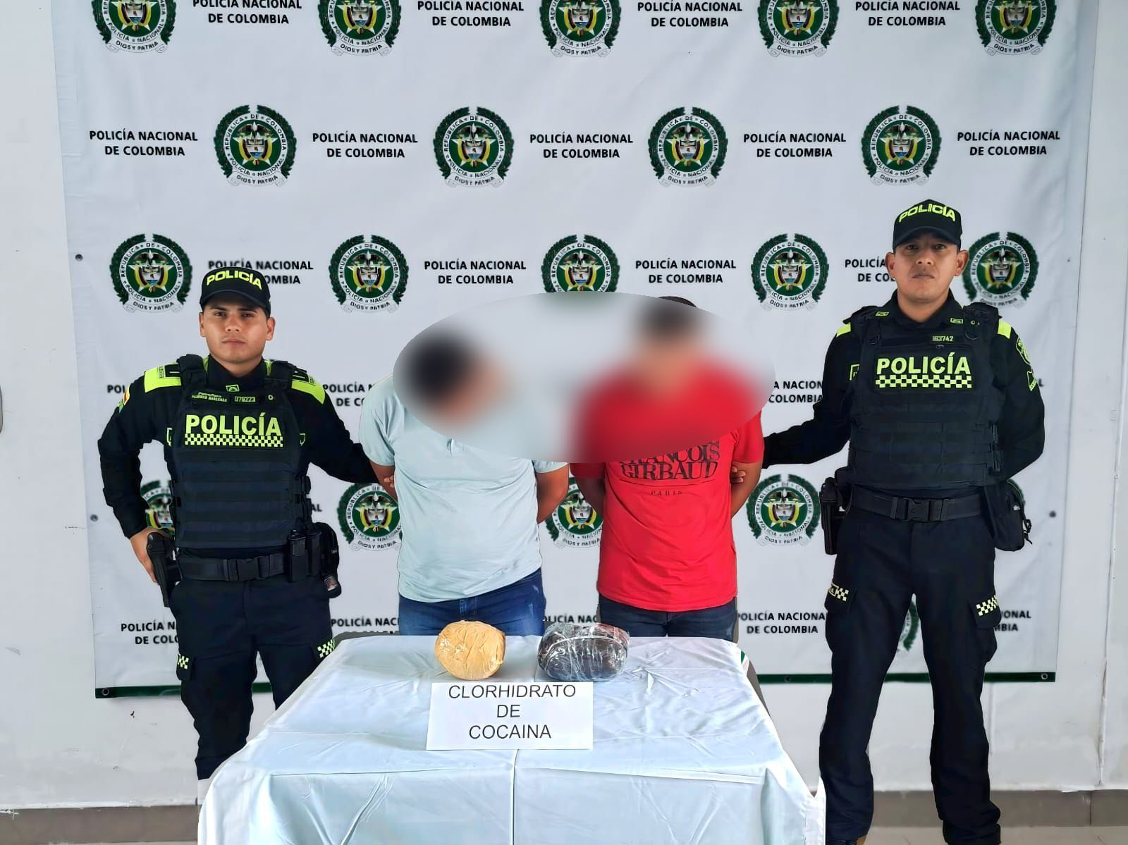 En un operativo de rutina llevado a cabo por uniformados adscritos a la estación de policía de Huasano, se logró la captura de dos hombres y la incautación de 3 kilogramos de clorhidrato de cocaína en la vía que conecta con el corregimiento de Robledo. Los detenidos, de 47 y 54 años, se movilizaban en una motocicleta cuando fueron interceptados por las autoridades, quienes hallaron el estupefaciente oculto