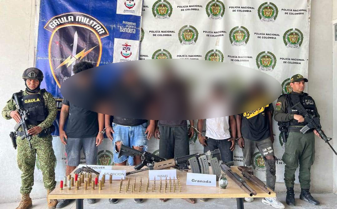 Las capturas de los primeros cinco individuos se llevaron a cabo en el barrio Pampa Linda de Buenaventura. Durante labores de verificación y control, miembros del Gaula de la Armada Nacional y la Policía Nacional escucharon detonaciones provenientes de unas viviendas. Al llegar al lugar, fueron recibidos con disparos, pero lograron capturar a los implicados, quienes intentaron refugiarse en un inmueble abandonado. En el sitio, se incautaron dos fusiles, dos escopetas, un revólver, una granada de fragmentación y una considerable cantidad de munición.