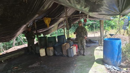 El primer operativo tuvo lugar en los sectores de El Charco y Vista Hermosa, en el municipio de Timbiquí. En esta zona, las tropas militares localizaron y destruyeron dos laboratorios artesanales que contenían 600 galones de gasolina procesada, 90 galones de ACPM, 150 galones de base de coca procesada, 750 kilogramos de cemento y 180 kilogramos de hoja de coca. Todos estos insumos estaban ocultos en canecas plásticas, listas para ser utilizadas en la producción de drogas ilícitas.