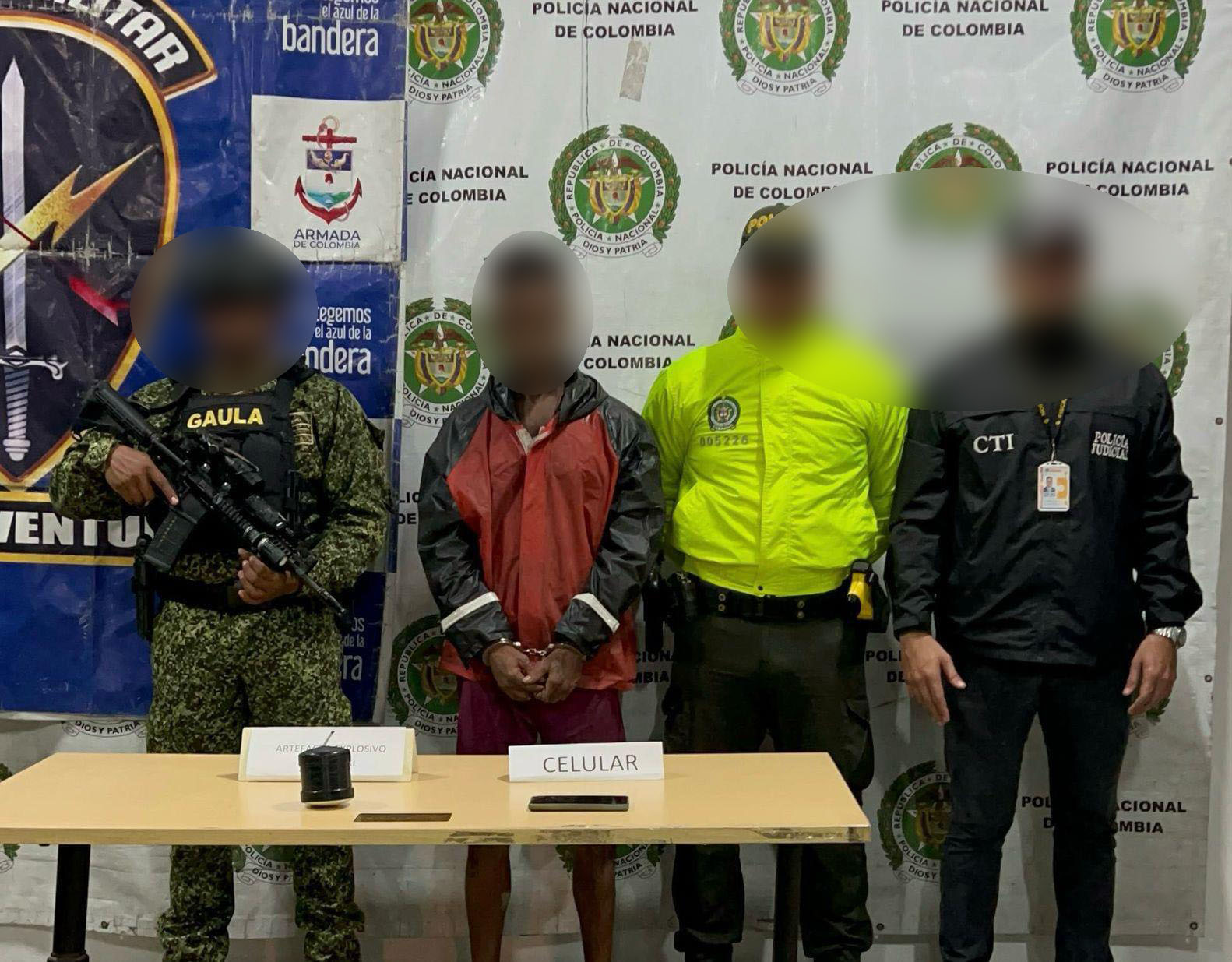 El arsenal y los estupefacientes incautados, junto con los capturados, fueron puestos a disposición de la Fiscalía General de la Nación, donde, tras las audiencias de legalización de captura, se dictó medida de privación de libertad por los delitos de tráfico, fabricación, porte o tenencia de armas de fuego y municiones, así como tráfico y porte de estupefacientes.