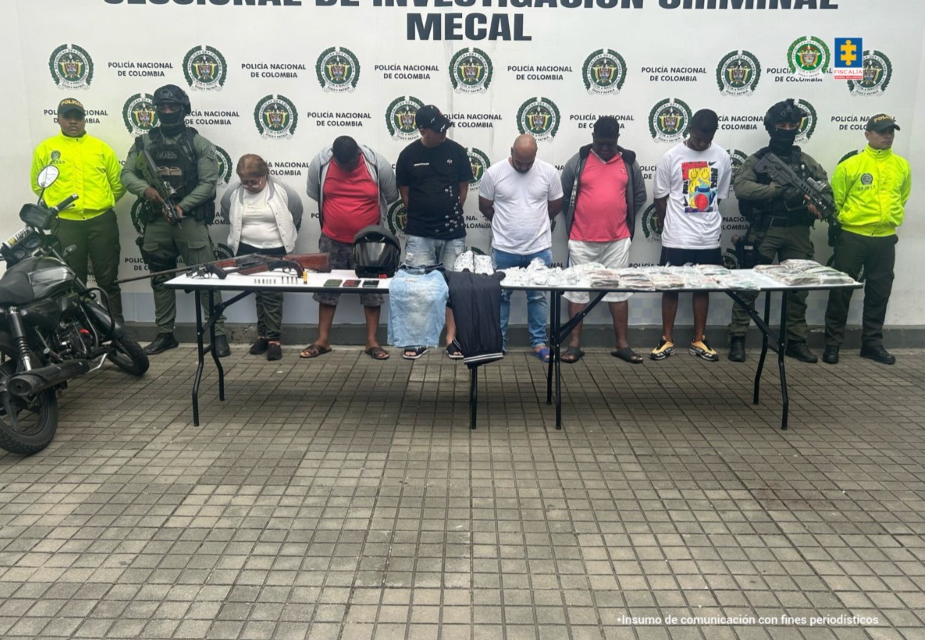 Los detenidos fueron identificados como Jorge Eduardo Gómez Mosquera, Édgar Hernando Lerma Valencia, Juan Nicolás Castañeda Mejía, Nicolás Andrés Toro Sabogal, Yaneth Gaviria Manjarrez y José Mauricio Morquera Garcés. Un fiscal seccional imputó cargos en su contra por los delitos de concierto para delinquir, hurto calificado y agravado, tráfico, fabricación o porte de estupefacientes, enriquecimiento ilícito de particulares, y fabricación, tráfico y porte de armas de fuego o municiones. Ninguno de los procesados aceptó los cargos presentados.