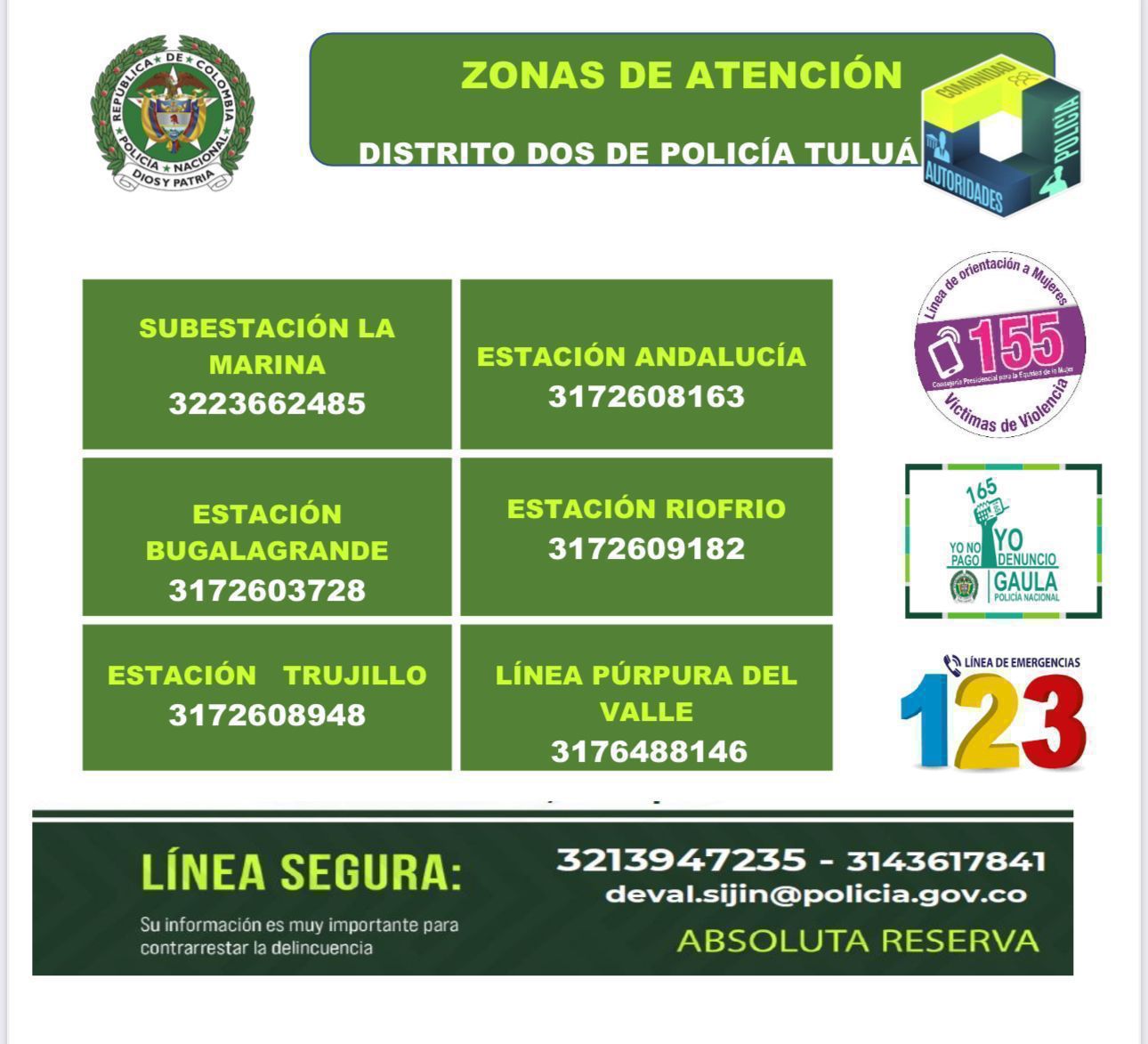 El Comandante del Segundo Distrito de Policía de Tuluá anunció el fortalecimiento de las líneas telefónicas de atención al ciudadano, con el propósito de facilitar la comunicación directa entre la comunidad y las autoridades ante situaciones que afecten la seguridad o la convivencia.