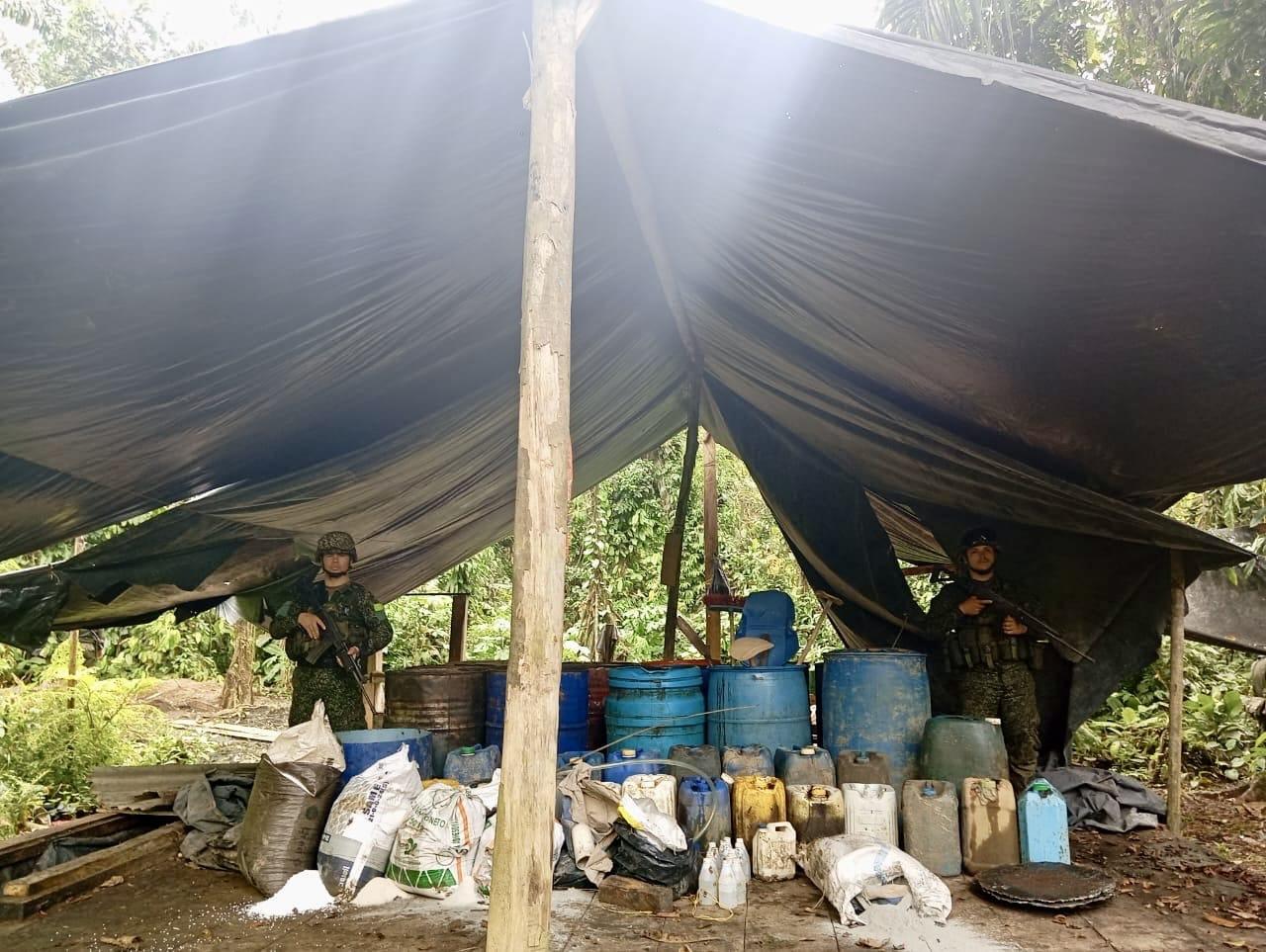 Tropas del Batallón Fluvial de Infantería de Marina No. 22 realizaron la intervención en los sectores de Arenal y Quebrada Donasi, ubicados sobre el río Curundú. Durante la operación, fueron incautados 2.724 galones de insumos líquidos, 670 kilogramos de insumos sólidos, 446 galones de pasta base de coca procesada y 830 kilogramos de hoja de coca. Además, se decomisó material utilizado para el almacenamiento y procesamiento de sustancias ilícitas.