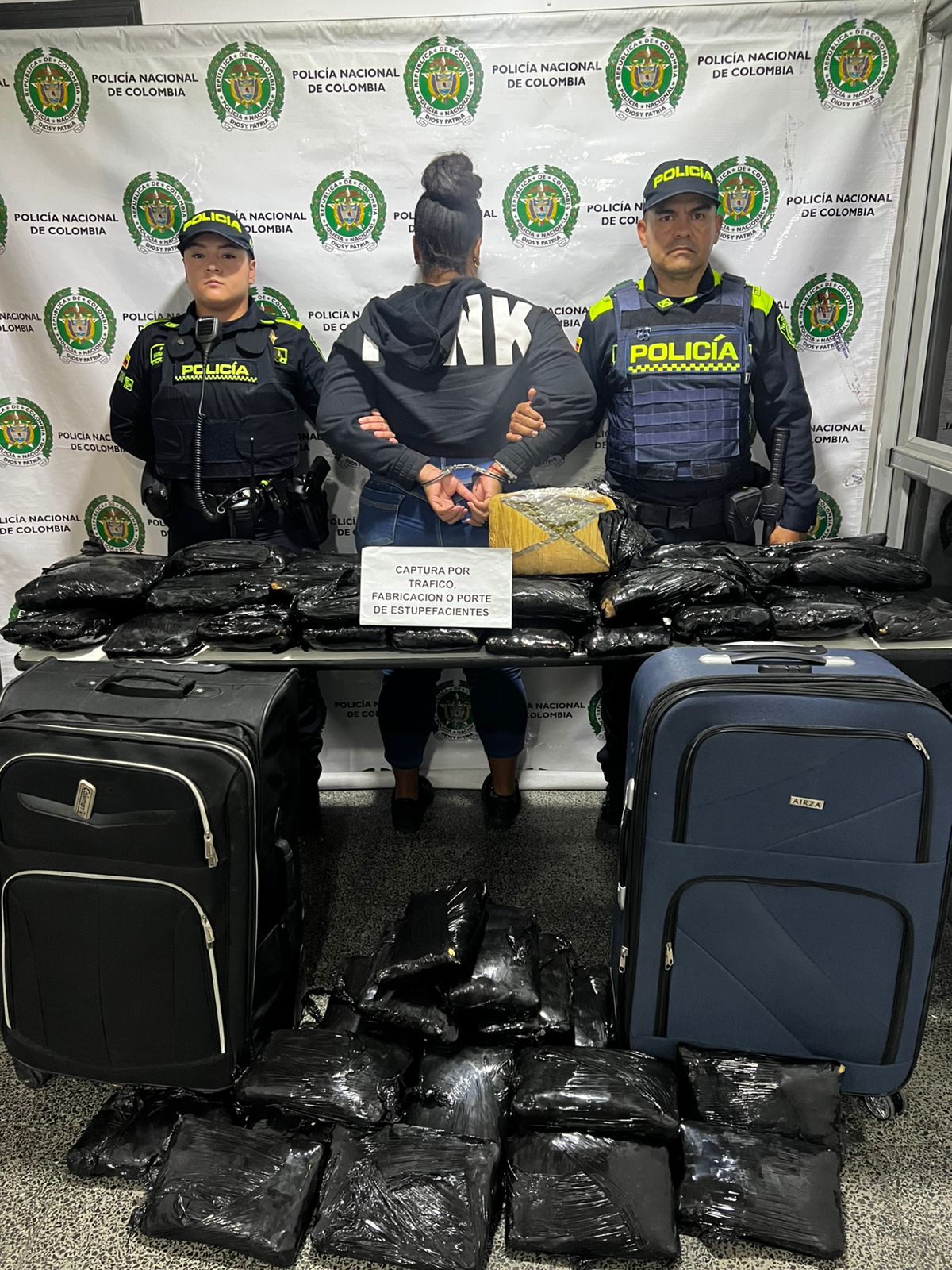 Durante un operativo de control realizado en el tercer nivel del Terminal de Transportes de Cali, las autoridades incautaron 60 paquetes de marihuana que eran transportados en dos maletas por una mujer. La acción fue posible gracias a los controles preventivos y al accionar oportuno de los uniformados presentes en la zona.