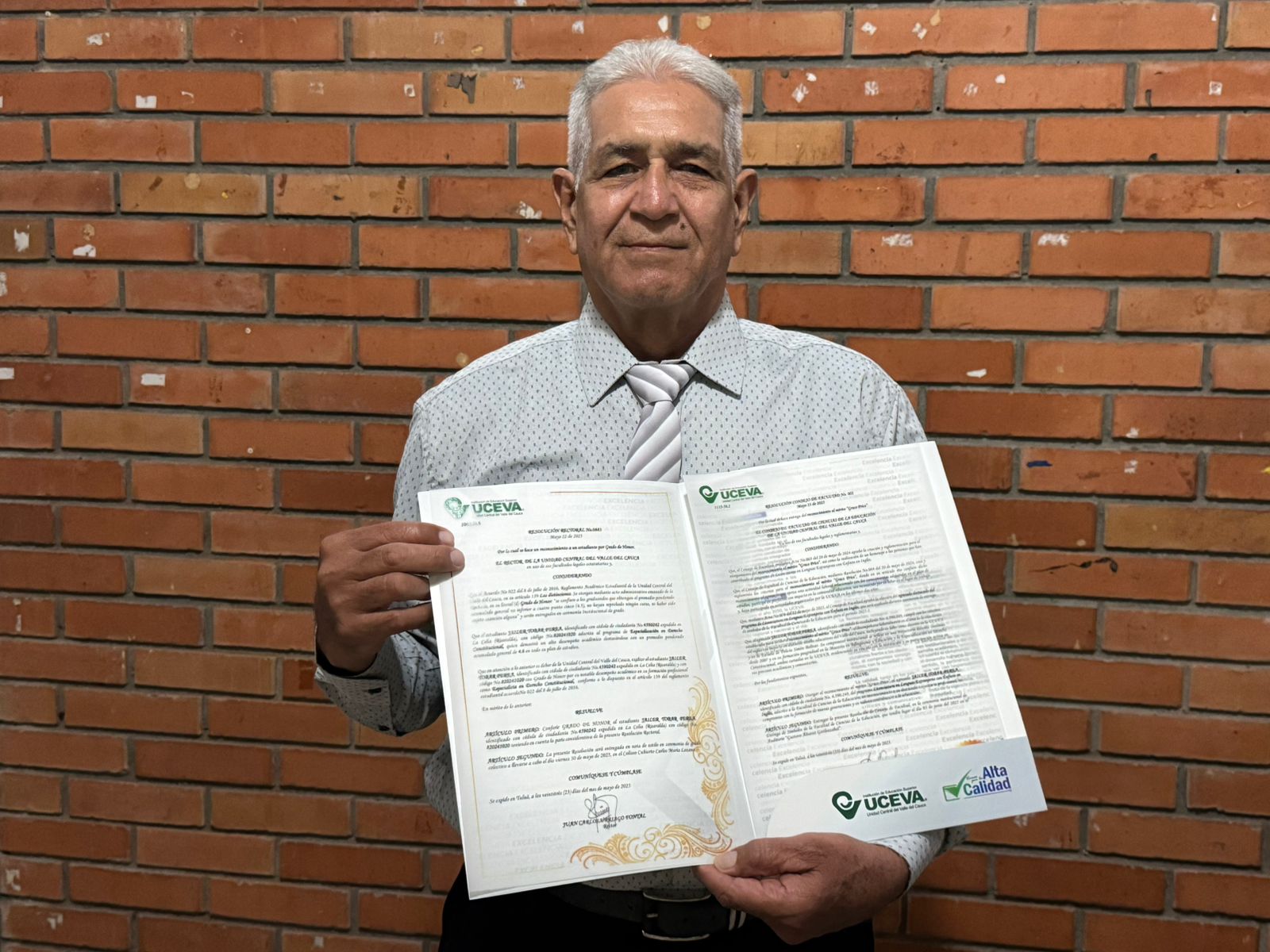 Además de su destacada trayectoria docente, Jailer Tovar fue reconocido por haber alcanzado un puntaje sobresaliente al realizar dos posgrados simultáneamente, hecho que le valió un grado de honor por parte de la UCEVA.