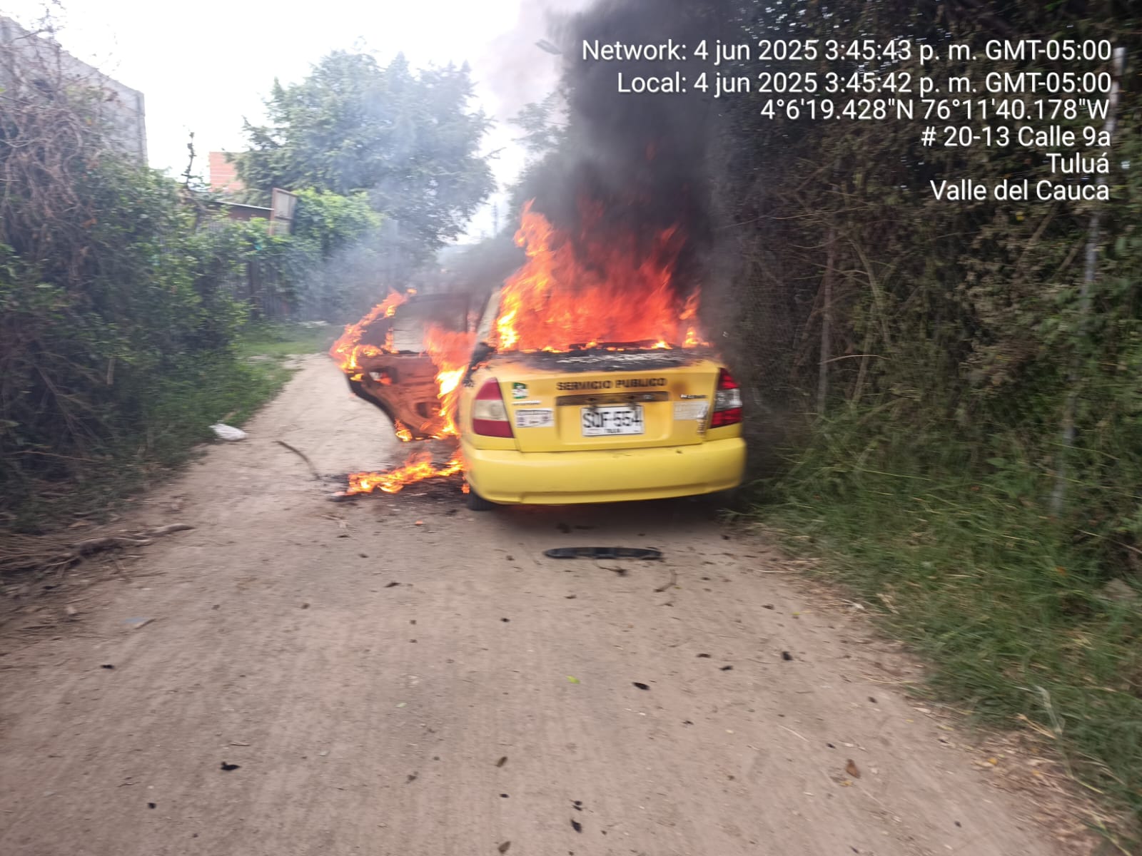 Una serie de ataques incendiarios contra vehículos de servicio público generó alarma durante la tarde del miércoles en el municipio de Tuluá. Tres taxis fueron objeto de incendios intencionales en distintos puntos de la ciudad, lo que llevó a las autoridades a activar medidas de refuerzo en la seguridad local.