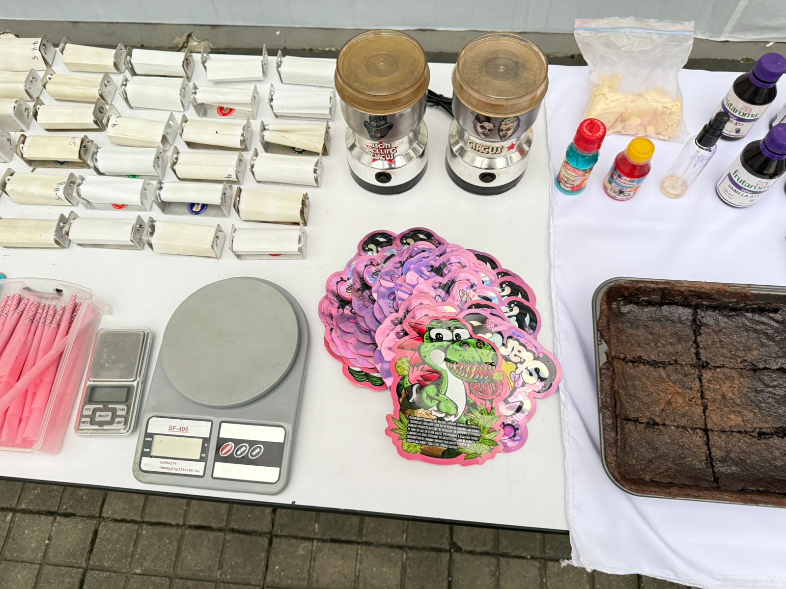 Durante la operación, las autoridades incautaron aproximadamente 400 dosis de sustancias alucinógenas, que incluyen marihuana exótica en presentación comestible, cocaína de alta pureza y anfetaminas, además de materiales empleados para la dosificación de las drogas.