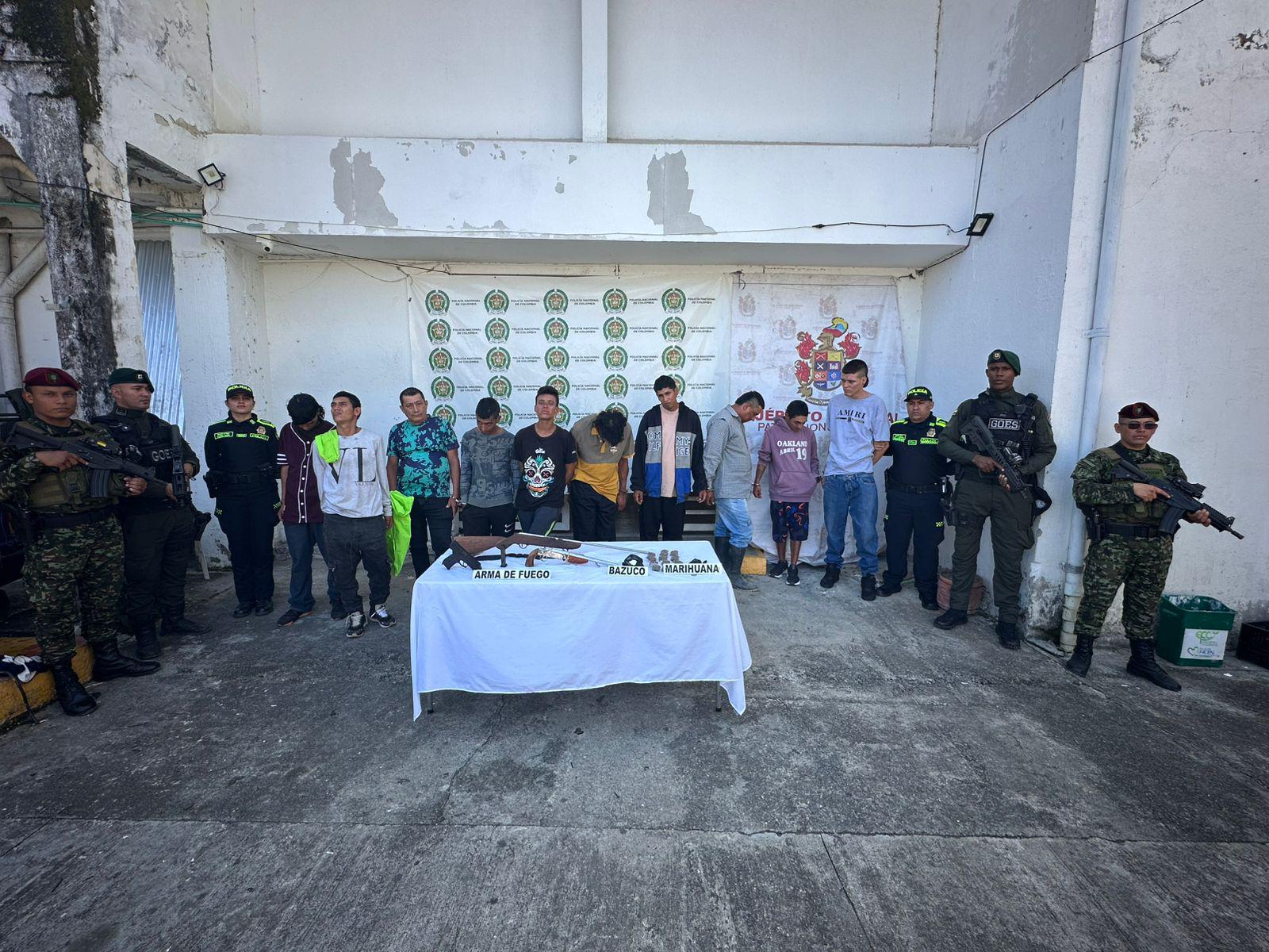 Durante el operativo, que se llevó a cabo en varios puntos del municipio de Caicedonia, las autoridades judiciales y militares efectuaron seis diligencias de registro y allanamiento que derivaron en la captura de diez personas. Siete de ellas tenían orden judicial por delitos relacionados con el tráfico de drogas, porte ilegal de armas y concierto para delinquir. Las otras tres fueron sorprendidas en flagrancia mientras se desarrollaban los procedimientos.