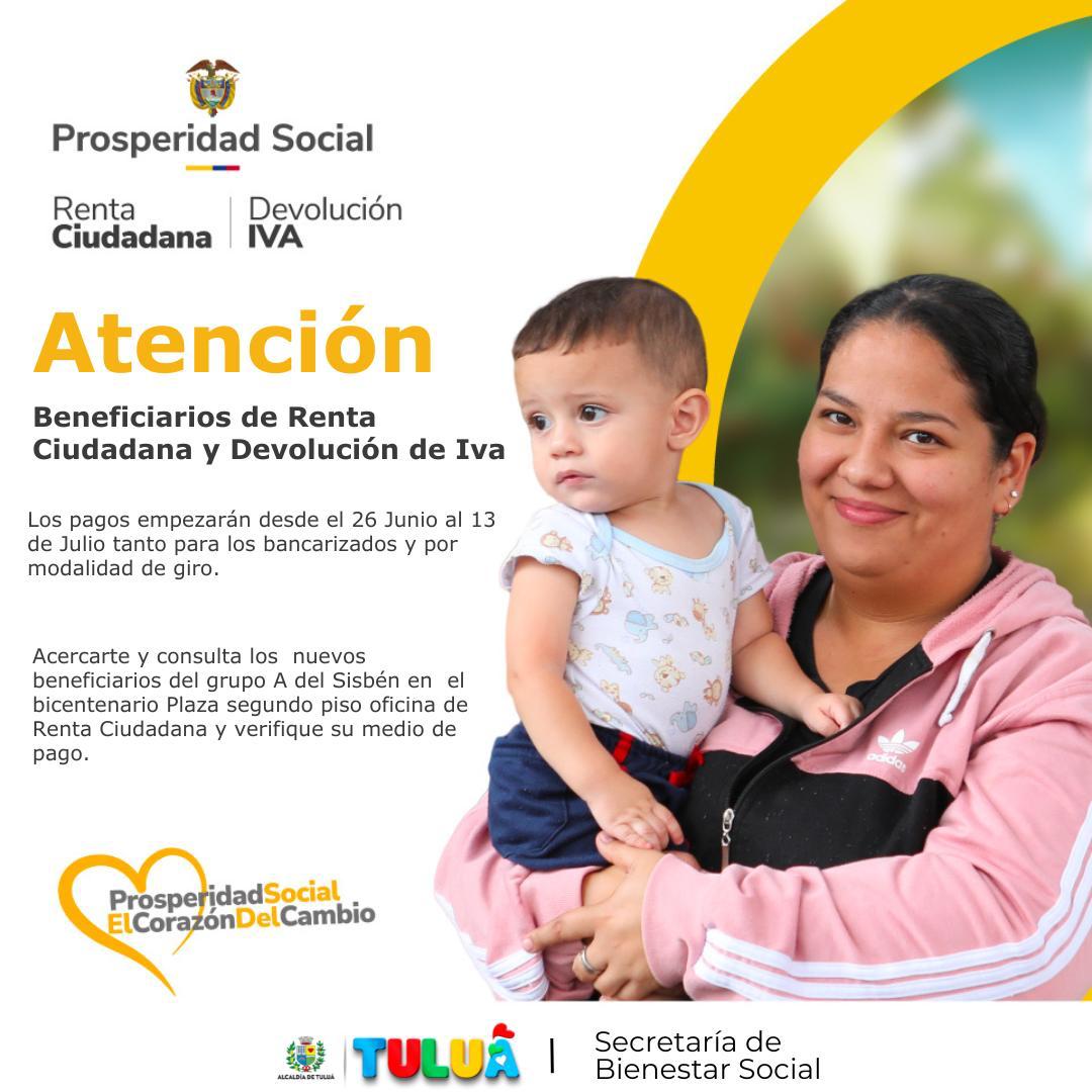 La Secretaría de Bienestar Social informó que desde esta semana comenzaron los desembolsos de los programas sociales Renta Ciudadana y Devolución del IVA, impulsados por el Gobierno Nacional a través del Departamento de Prosperidad Social. Estos pagos estarán disponibles hasta el próximo 13 de julio y están destinados a apoyar a los hogares en condición de pobreza y vulnerabilidad del municipio.