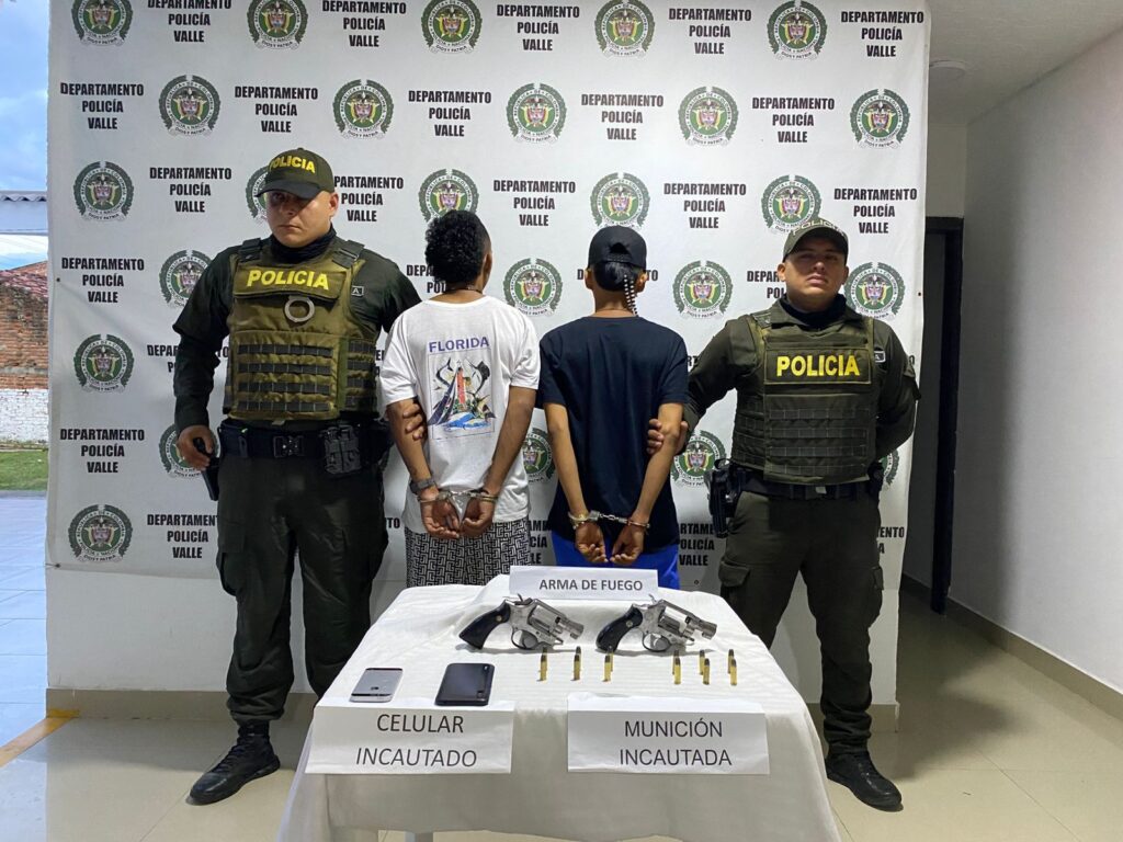 Riofrío, Valle del Cauca – En un operativo de seguridad realizado en el municipio de Riofrío, la Policía Nacional logró la captura de dos hombres identificados como alias ‘Menor’ y alias ‘Crespo’, quienes estarían vinculados con el grupo armado organizado ‘Clan del Golfo’. Los sujetos, de 21 y 23 años respectivamente, fueron detenidos cuando se encontraban en posesión de armas de fuego, lo que refuerza su presunta participación en actividades violentas en la región.
