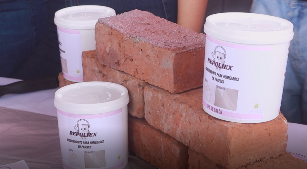 Entre los proyectos destacados estuvo Repoliex, una alternativa que busca transformar el poliestireno expandido —conocido comúnmente como icopor— en un recubrimiento para combatir humedades en las paredes de los hogares.