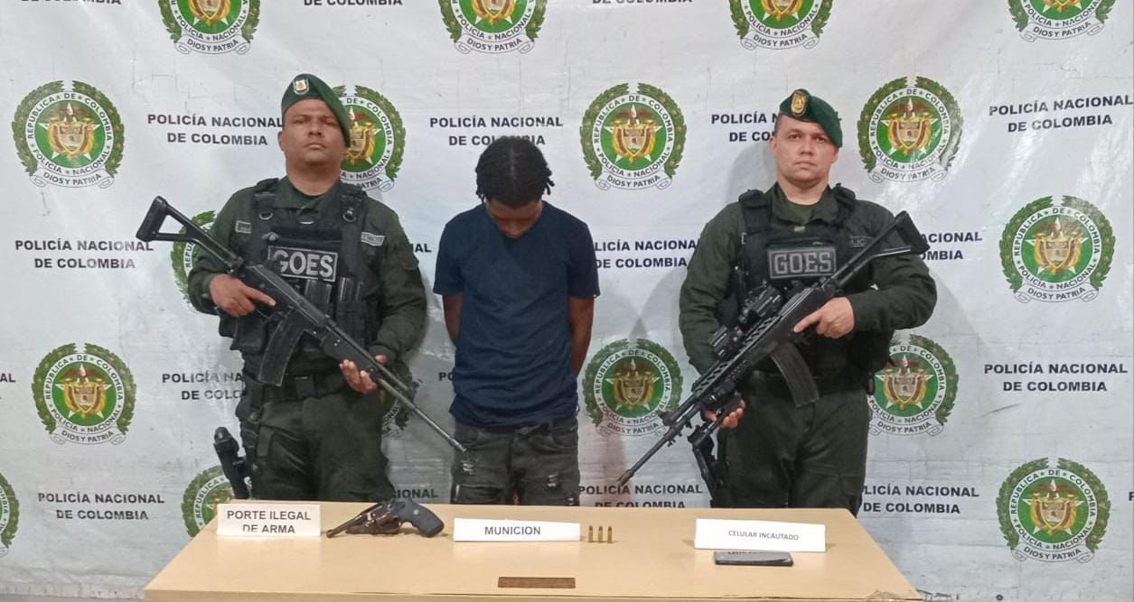 El detenido, identificado como Carlos Estiben Mina, llevaba consigo un revólver con tres cartuchos, que según las autoridades podría haber sido utilizado en la comisión de actividades delictivas.