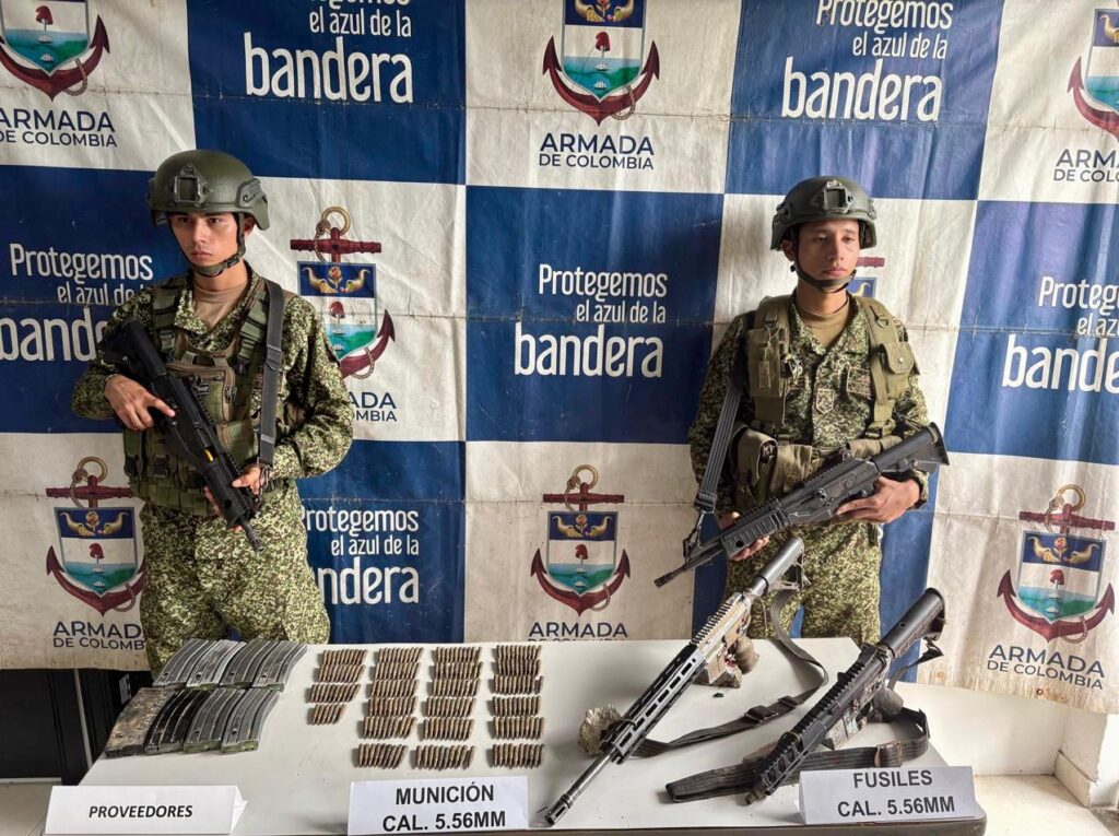 En un segundo procedimiento, las tropas ubicaron un depósito ilegal con dos fusiles, ocho proveedores y 202 cartuchos calibre 5.56 milímetros. Este material habría sido destinado a acciones contra la Fuerza Pública y la comunidad.