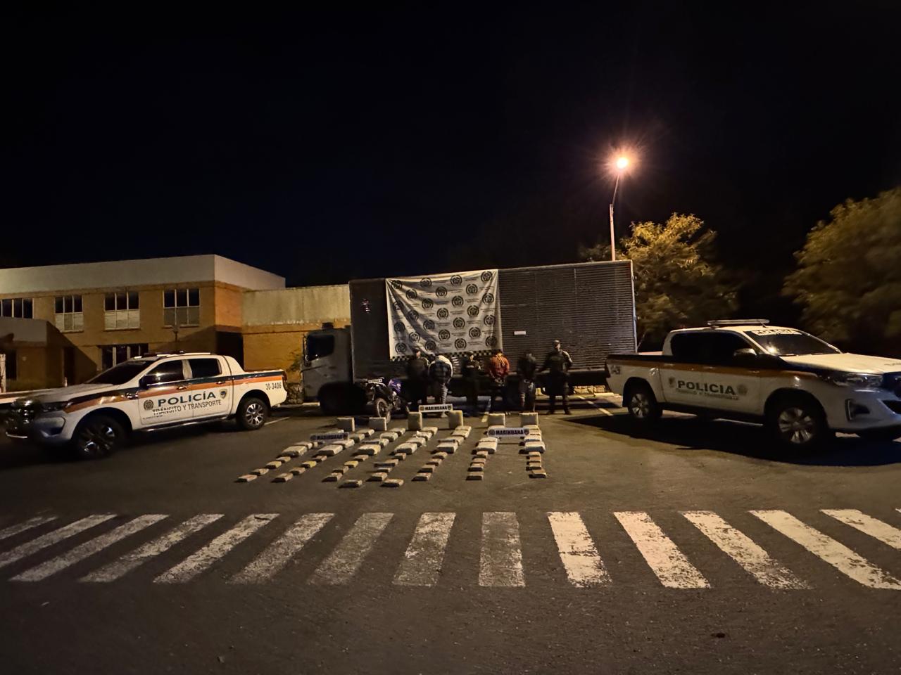 El operativo permitió también la incautación del camión, la motocicleta y tres teléfonos celulares. Los capturados quedaron a disposición de la Fiscalía URI de Buga por el delito de tráfico, fabricación o porte de estupefacientes.