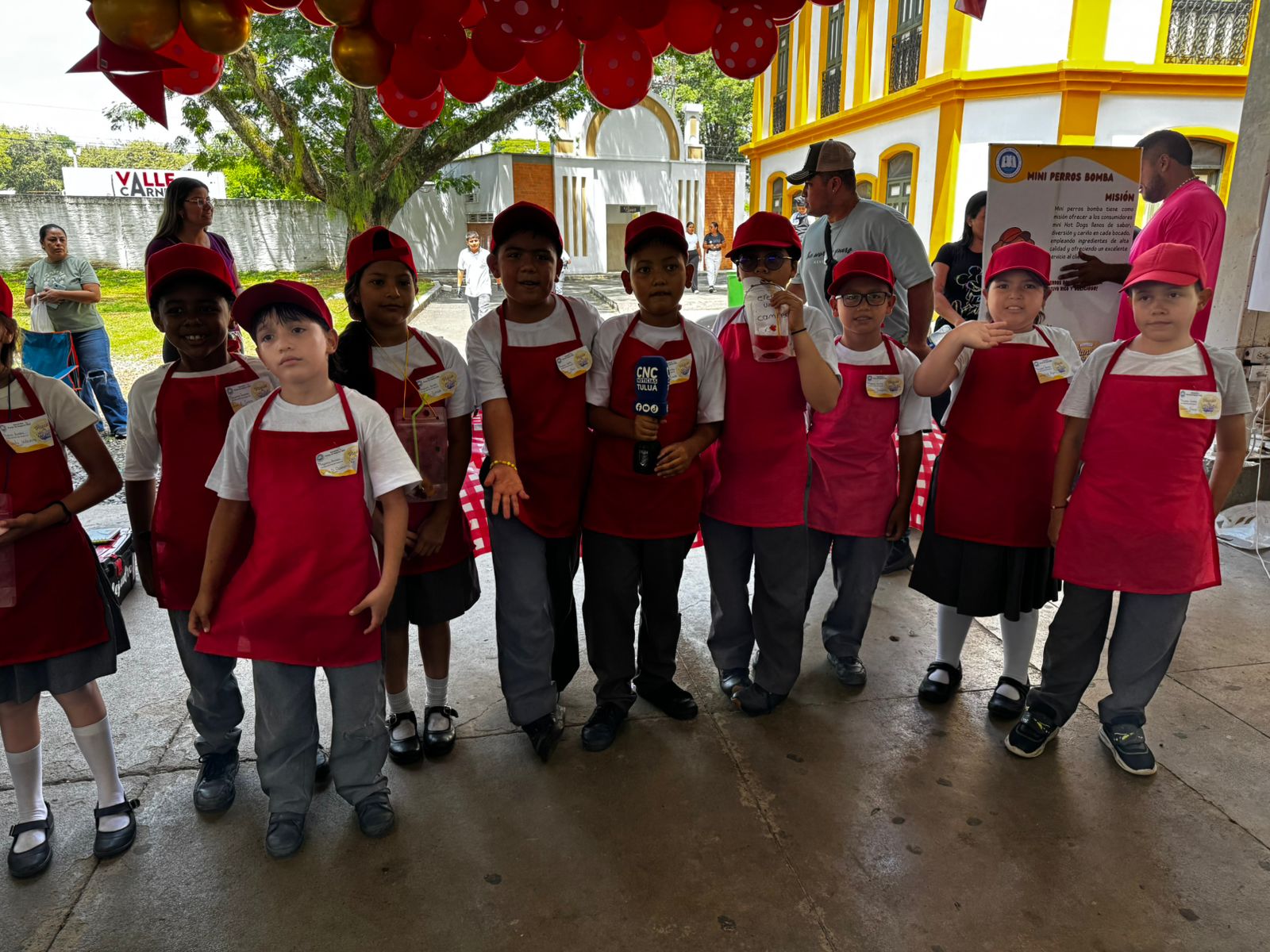 Durante la feria empresarial del Colegio del Niño Jesús, en el coliseo de ferias Manuel Victoria Rojas, los estudiantes Alejandro Patiño y Liam Selena Pasminio presentaron su proyecto de negocio basado en la producción y venta de tortas de banano.