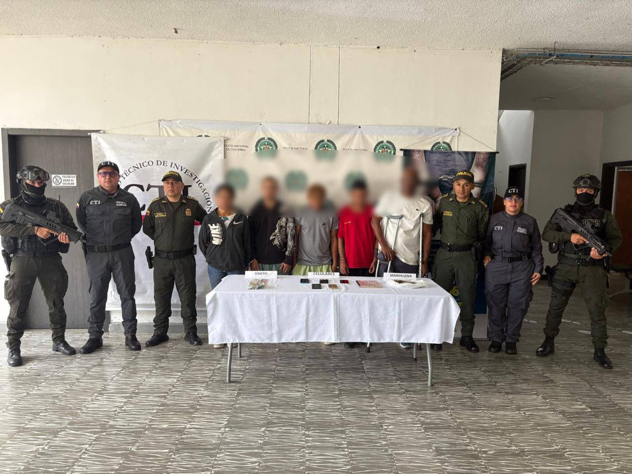 Durante el procedimiento fueron capturados alias El Mocho (señalado como presunto cabecilla), alias Leidy, José, Yeison y Marin. En el lugar se incautaron 111 gramos de marihuana, cinco celulares, dinero en efectivo y un cuaderno con registros de contabilidad de la presunta actividad ilícita.