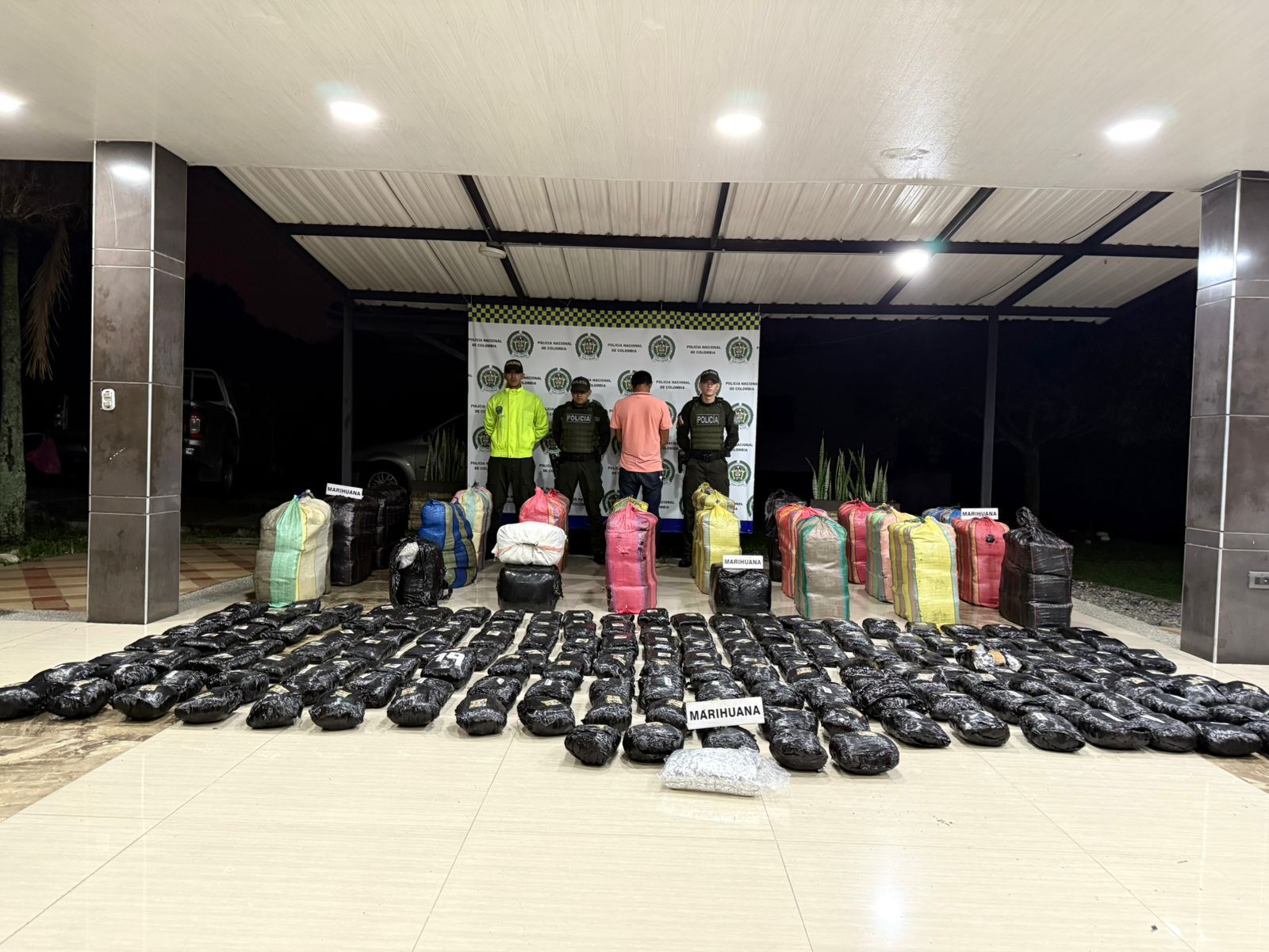 La Policía Nacional incautó 746 kilogramos de marihuana que eran transportados en un vehículo de carga sobre la vía Yumbo – Tuluá, en el departamento del Valle del Cauca.