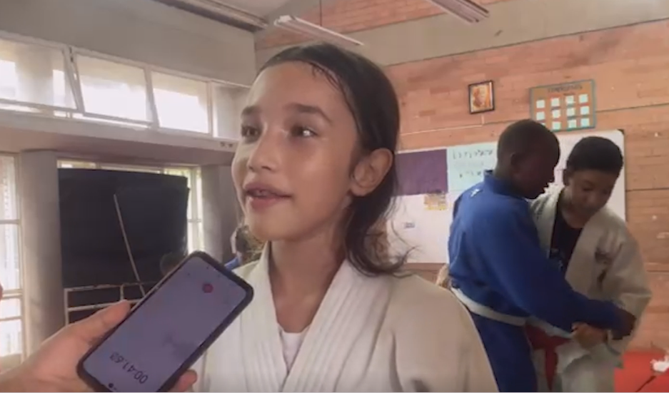 Con entusiasmo, invita a más niños a sumarse al judo, un deporte que —según ella— ayuda tanto física como mentalmente.