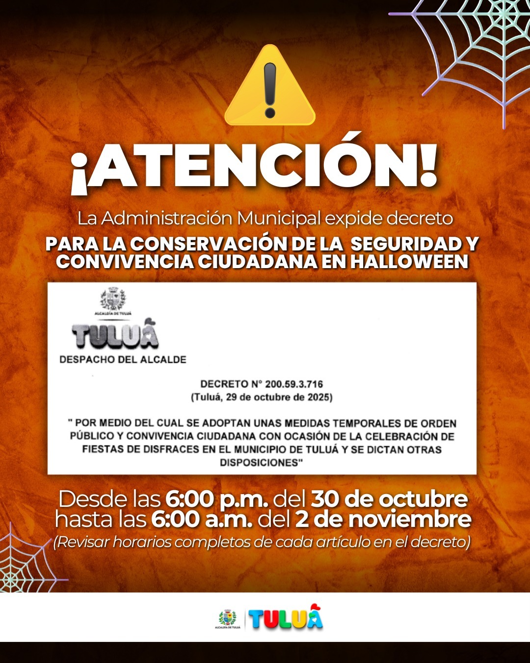 La Administración Municipal expidió un decreto que adopta medidas temporales de orden público para garantizar la seguridad y convivencia durante las festividades de Halloween.