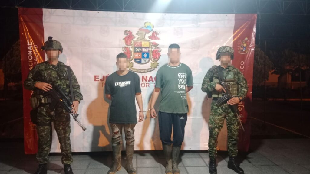 Posteriormente, dos sujetos más, identificados como alias Suricato y alias Caicedo, fueron detenidos cuando intentaban escapar del área de operaciones. Ambos contaban con órdenes de captura vigentes por delitos relacionados con homicidio y extorsión.