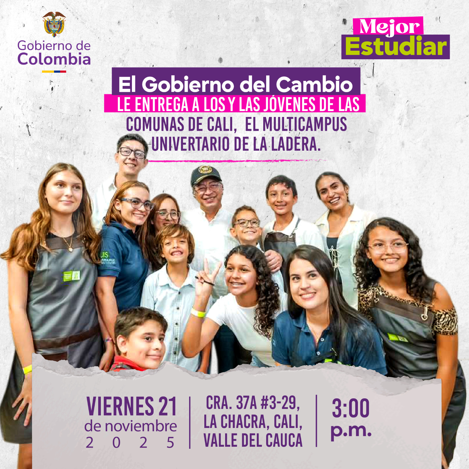 El Gobierno nacional realizará este viernes 21 de noviembre la entrega del Multicampus TTU Ladera, una nueva sede educativa que agrupa oferta académica de varias Instituciones de Educación Superior públicas.