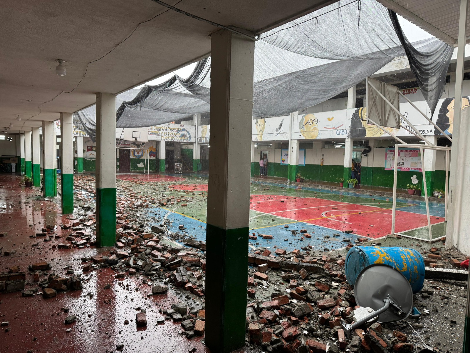 Durante la inspección inicial se identificó la pared colapsada dentro del centro educativo, situación que motivó la evacuación preventiva mientras se verifican las condiciones de seguridad.