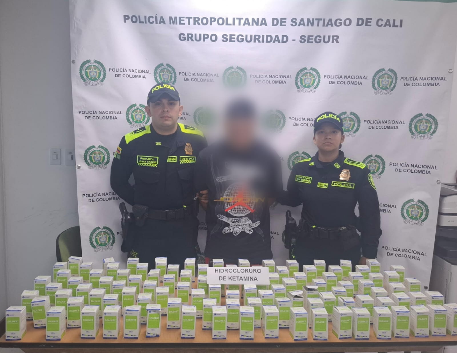 Un hombre de 23 años fue capturado en Cali cuando transportaba 108 frascos de ketamina dentro de un vehículo particular, durante un procedimiento de control realizado en el barrio Piloto.