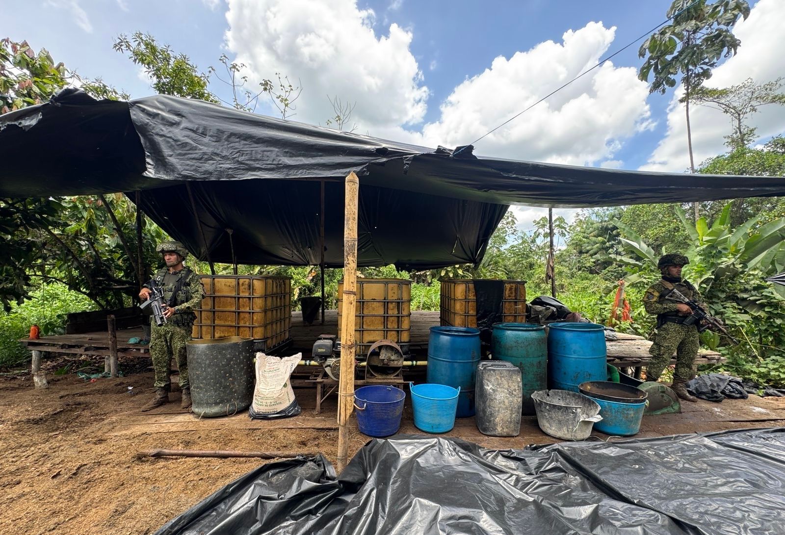 Treinta laboratorios utilizados para el procesamiento de pasta base de coca fueron ubicados y destruidos en zonas rurales de los departamentos de Nariño y Cauca durante operativos contra el narcotráfico desarrollados en el Pacífico sur del país.