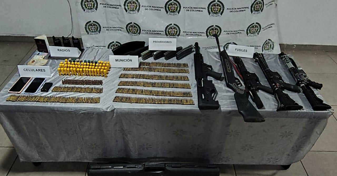 Durante la operación fueron incautados tres fusiles M4, dos escopetas semiautomáticas, más de 500 cartuchos de diferentes calibres, proveedores para armas y equipos tecnológicos como radios, un celular y una tablet.